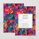 RSVP card with a cool digital 3d style pattern. Bright and colourful flowers with a cool style which looks like paper cutouts.