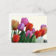Beautiful bright coloured tulips of red, yellow, pink and lavender popping out of bright green leaves. Lovely spring flowers!