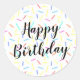 Colourful Sprinkle Confetti Lines Happy Birthday Classic Round Sticker