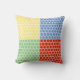 Modern colourful yellow blue red green squares and white circles Throw Pillow. Four colours representing the four elements of nature! The white circles is the fifth element or spirit pervading all the four elements of nature.