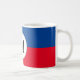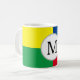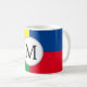 This stylish custom coffee mug features a vibrant, colourful, modern design. Each corner features a different bright colour. Blue, red, green, and yellow frame a sample monogram initial in the centre. You can personalise the mug to include your own custom initial or other text.