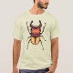 Colourful beetle shirt with an artistic vector illustration depicting a stag beetle with big antlers patterned with decorative elements in fun yellow and orange colours.