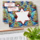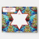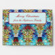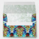Vivid, colourful stained glass Christmas tree repeating pattern design envelope. Featuring a bright Christmas star, for you to write the recipients' address, and a return address box at the top left, with customisable text - both feature a white background for ease of reading the addresses. On the reverse side, on the top flap, you can add your own Christmas holiday greeting. Inside the envelope is a green faux glitter design.