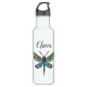 Personalised water bottle with dragonfly with colourful stained glass wings.