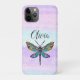 Personalised phone case with dragonfly with colourful stained glass wings.