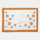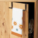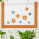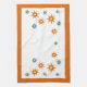 Brighten up your kitchen with this stylish mid-century modern kitchen towel. This design features starbursts in shades of turquoise blue, red- orange and yellow; framed in bright orange.