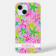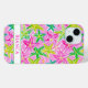 Customise this colourful watercolor starfish in greens and pinks iPhone 15 case with your your name in a trendy modern CAP font in pink on white. It's so modern and trendy!