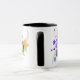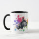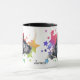 A watercolor image of a beautiful black Great Dane emerges from a collage of colourful stars on this mug. Star colours include pink, blue, teal, yellow, and green. The image is printed on two sides, with your custom text in black at the centre bottom between the images. Perfect for anyone who has lost their heart to a Dane!