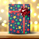 Red, Green and Yellow Stars Pattern on Navy Blue Background Colourful Wrapping Paper.