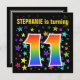 Colourful Stars + Rainbow Pattern "11" Birthday # Invitation