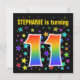 This fun, exciting, and vibrant birthday party invitation design features a colourful stars pattern, along with the number "11" having a multicolored rainbow like spectrum or gradient pattern. The name on the front can be customised. The back features custom details about the party. Birthday party invitations like this might be sent to invite guests to a birthday party being held to celebrate somebody’s eleventh birthday. [~Z0000349]