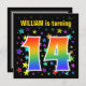 Colourful Stars + Rainbow Pattern "14" Birthday # Invitation