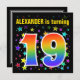 Colourful Stars + Rainbow Pattern "19" Birthday # Invitation