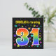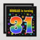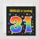 This fun, vibrant, and exciting birthday party invitation design features a colourful stars inspired pattern, along with the number "31" having a multicolored rainbow inspired spectrum or gradient pattern. The name on the front can be customised. The back features customisable details about the party. Birthday party invitations like this might be sent to potential guests for a birthday party being held to celebrate somebody’s thirty first birthday. [~Z0000349]