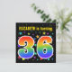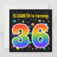 This fun, vibrant, and exciting birthday party invitation design features a colourful stars inspired pattern, along with the number "36" having a multicolored rainbow inspired spectrum or gradient pattern. The name on the front can be customised. The back features personalised details about the party. Birthday party invitations like this might be sent to potential attendees for a birthday party being held to celebrate somebody’s thirty sixth birthday. [~Z0000349]