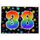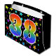 This exciting, fun, and vibrant gift bag design features a colourful star field inspired pattern, along with the number "38" having a multicolored rainbow spectrum like gradient pattern, on a black coloured background. A gift bag like this might be a fun, happy way of wrapping gifts or presents being given for somebody’s thirty eighth birthday, or perhaps for a couple’s thirty eighth wedding anniversary, or some other 38th event. [~Z0000347]