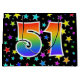 This exciting, fun, and vibrant gift bag design features numerous colourful star shapes, along with the number "51" featuring a multicolored rainbow inspired spectrum gradient pattern, on a black coloured background. A gift bag like this might be a fun, happy way of wrapping gifts or presents being given for somebody’s fifty first birthday, or perhaps for a couple’s fifty first wedding anniversary, or some other 51st event. [~Z0000347]