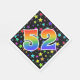 This exciting, fun, and vibrant paper napkin design features a colourful stars pattern, along with the number "52" having a multicolored rainbow inspired spectrum gradient pattern, on a black coloured background. Paper napkins like this might be fun to use at a party celebrating somebody’s fifty second birthday, or perhaps a couple’s fifty second wedding anniversary, or some other 52nd event. [~Z0000346]