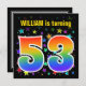 This fun, exciting, and vibrant birthday party invitation design features a colourful pattern of star shapes, along with the number "53" featuring a multicolored rainbow inspired spectrum or gradient pattern. The name on the front can be customised. The back features personalised details about the party. Birthday party invitations like this might be sent to invite guests to a birthday party being held to celebrate somebody’s fifty third birthday. [~Z0000349]