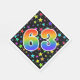 This exciting, fun, and vibrant paper napkin design features many colourful star shapes, along with the number "63" featuring a multicolored rainbow inspired spectrum gradient pattern, on a black coloured background. Paper napkins like this might be fun to use at a party commemorating somebody’s sixty third birthday, or perhaps a couple’s sixty third wedding anniversary, or some other 63rd event. [~Z0000346]