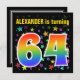 Colourful Stars + Rainbow Pattern "64" Birthday # Invitation