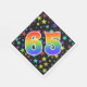 This exciting, fun, and vibrant paper napkin design features a colourful star field pattern, along with the number "65" having a multicolored rainbow spectrum like gradient pattern, on a black coloured background. Paper napkins like this might be fun to use at a party being held in honour of somebody’s sixty fifth birthday, or perhaps a couple’s sixty fifth wedding anniversary, or some other 65th event. [~Z0000346]