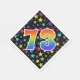 This exciting, fun, and vibrant paper napkin design features many colourful star shapes, along with the number "73" featuring a multicolored rainbow inspired spectrum gradient pattern, on a black coloured background. Paper napkins like this might be fun to use at a party being held to celebrate somebody’s seventy third birthday, or perhaps a couple’s seventy third wedding anniversary, or some other 73rd event. [~Z0000346]