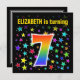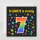 Colourful Stars + Rainbow Pattern "7" Birthday # Invitation