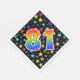 This exciting, fun, and vibrant paper napkin design features a colourful star shapes pattern, along with the number "81" featuring a multicolored rainbow spectrum like gradient pattern, on a black coloured background. Paper napkins like this might be fun to use at a party when celebrating somebody’s eighty first birthday, or perhaps a couple’s eighty first wedding anniversary, or some other 81st event. [~Z0000346]