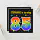 This exciting, fun, vibrant birthday party invitation design features a colourful stars pattern, along with the number "85" having a multicolored rainbow inspired spectrum or gradient pattern. The name on the front can be customised. The back features custom details about the party. Birthday party invitations like this might be sent to invite guests to a birthday party being held to celebrate somebody’s eighty fifth birthday. [~Z0000349]