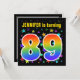 This fun, vibrant, and exciting birthday party invitation design features a colourful star field inspired pattern, along with the number "89" having a multicolored rainbow like spectrum or gradient pattern. The name on the front can be personalised. The back features customisable details about the party. Birthday party invitations like this might be sent to potential attendees for a birthday party being held to celebrate somebody’s eighty ninth birthday. [~Z0000349]