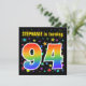 This fun, vibrant, and exciting birthday party invitation design features a colourful stars inspired pattern, along with the number "94" having a multicolored rainbow inspired spectrum or gradient pattern. The name on the front can be personalised. The back features customisable information about the party. Birthday party invitations like this might be sent to potential attendees for a birthday party being held to celebrate somebody’s ninety fourth birthday. [~Z0000349]