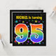 This exciting, fun, vibrant birthday party invitation design features a colourful pattern of star shapes, along with the number "95" featuring a multicolored rainbow like spectrum or gradient pattern. The name on the front can be personalised. The back features custom information about the party. Birthday party invitations like this might be sent to potential guests for a birthday party being held to celebrate somebody’s ninety fifth birthday. [~Z0000349]
