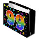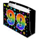This exciting, fun, and vibrant gift bag design features a colourful star field pattern, along with the number "99" having a multicolored rainbow spectrum like gradient pattern, on a black coloured background. A gift bag like this could perhaps be a fun way to wrap presents or gifts being given for somebody’s ninety ninth birthday, or perhaps for a couple’s ninety ninth wedding anniversary, or some other 99th event. [~Z0000347]
