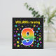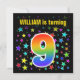 Colourful Stars + Rainbow Pattern "9" Birthday # Invitation