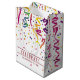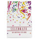 Whatever the occasion, be sure to wrap things up with gift bag design. Colourful streamers and confetti decorate the bag. On the bottom, of the front and back, there's a banner with the word 'CELEBRATE'. Underneath the banner the is an area for additional text. All text in this design can be personalised.