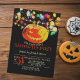 Colourful String Lights Grinning Pumpkin Halloween Invitation