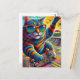 Colourful Striped Cat Skateboarding Postcard
