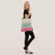This striped and trendy design in pink-red, beige, green, and black can be personalised with your name. The black name template is set in a hand written script font. It's a stylish design that could be used for for school books, shopping, the beach, or your baby's supplies.