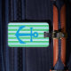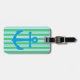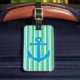 Spot your luggage from across the terminal with this nautical luggage tag. The front of the tag is done in blue, green and white stripes, with a sky blue anchor. The back of the tag is a solid sky blue, with custom white text ready to personalise. Matching travel products are available.