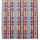colourful stripes and triangles in turquoise blue, coral pink, mint green, mustard yellow, orange-red, lavender purple, black, white, grey, and brown