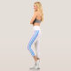 Pretty yoga capris leggings done in white, with blue, aqua and lavender stripes on both sides of the leggings. Lovely addition to our Colourful flowers yoga set.