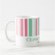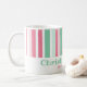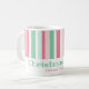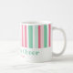 Pink and green are such yummy colours. They are a great combination for Christmas. These lively retro stripes are a lot of fun on this holiday coffee mug. Our minty text "Christmas Cheer" is editable. Be sure to change the example names and date to be the ones you want.