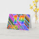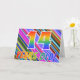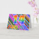 The front of this eye-catching, fun, and exciting birthday greeting card design features a multicolored striped pattern, along with the message "14 years old!" having a multicolored rainbow inspired gradient pattern. The inside features a customised greeting message, or could perhaps be cleared and left blank if a message is to be written by hand instead. A greeting card like this might be a fun way to acknowledge somebody’s fourteenth birthday. [~Z0000351]