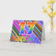 The front of this fun, exciting, and vibrant birthday greeting card design features a colourful stripes pattern, along with the message "17 years old!" having a multicolored rainbow like gradient pattern. The inside features a customisable greeting message, or could perhaps be cleared and left blank if a message is to be written by hand instead. A greeting card like this could perhaps be a fun way to celebrate somebody’s seventeenth birthday. [~Z0000351]
