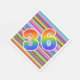This fun, exciting, and eye-catching paper napkin design features a colourful pattern of stripes, along with the number "36" featuring a multicolored rainbow like gradient pattern. Paper napkins like these could be fun to use at a party being held to celebrate somebody’s thirty sixth birthday, or perhaps a couple’s thirty sixth wedding anniversary, or some other 36th event. [~Z0000352]