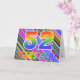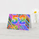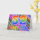The front of this fun, eye-catching, and exciting birthday greeting card design features a pattern of colourful stripes, along with the message "52 years old!" featuring a multicolored rainbow like gradient pattern. The inside features a customised greeting message, or could perhaps be cleared and left blank if a message is to be written by hand instead. A greeting card like this could be a fun, happy way of sending a message to somebody who is celebrating their fifty second birthday. [~Z0000351]