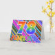 The front of this vibrant, exciting, and eye-catching birthday greeting card design features a multicolored striped pattern, along with the message "78 years old!" having a multicolored rainbow inspired gradient pattern. The inside features a customisable greeting message, or could perhaps be cleared and left blank if a message is to be written by hand instead. A greeting card like this could be used to send a message acknowledging somebody’s seventy eighth birthday. [~Z0000351]