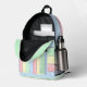 "Make a bold statement with this colourful stripes backpack, featuring a playful design of rustic soft pastel horizontal lines in shades of blue, green, yellow, and pink. Perfect for back-to-school or everyday use, this backpack is a trendy and vibrant choice for students who love to stand out. The unique striped pattern is ideal for adding a pop of colour to your outfit, making it both a fashionable and functional accessory.