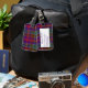 Handsome luggage tag done in the colourful Stuart tartan plaid pattern. A white text area, on the front, has purple text ready to personalise with your information. The perfect way to spot your luggage, and makes a great gift idea.
